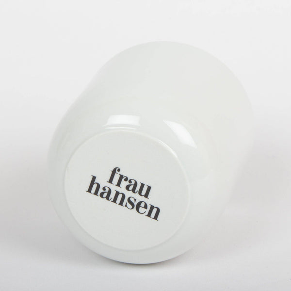 Im Innenboden des Bechers grüßt unser guter Hausgeist, die Frau Hansen Winkekatze. Auf dem Unterboden befindet sich unser Logo. Gefertigt aus feinstem Porzellan in der traditionsreichen Stadt Karlsbad in Tschechien und in Deutschland von Hand bedruckt. Dank Glasur ist der Becher abriebfest und spülmaschinengeeignet. Mit 250 ml Fassungsvermögen ist er perfekt für Kaffee, Tee oder heiße Schokolade.
