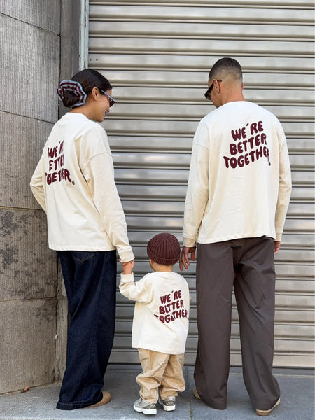 Zusammen ist man einfach stärker. Das BETTER TOGETHER Longsleeve für Kids macht den Partnerlook mit Mom und Dad komplett. In warmem Beige und mit großem Burgundy-Print “BETTER TOGETHER“. Ein kleines Icon auf der Brust verleiht dem Shirt einen liebevollen Touch.