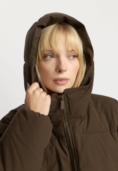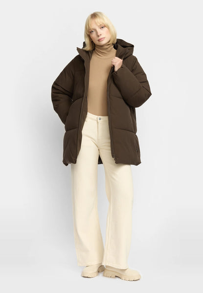 Schöne, schlichte Winterjacke in der Trendfarbe braun.