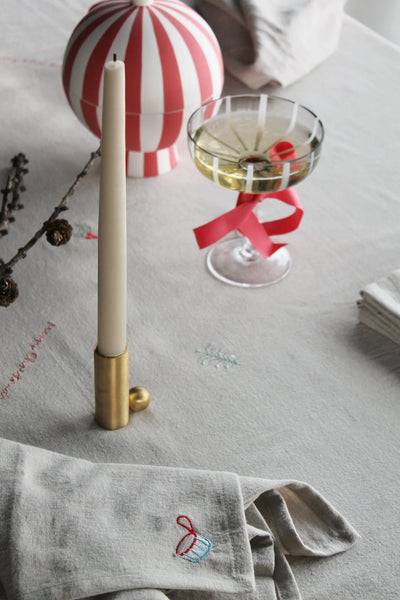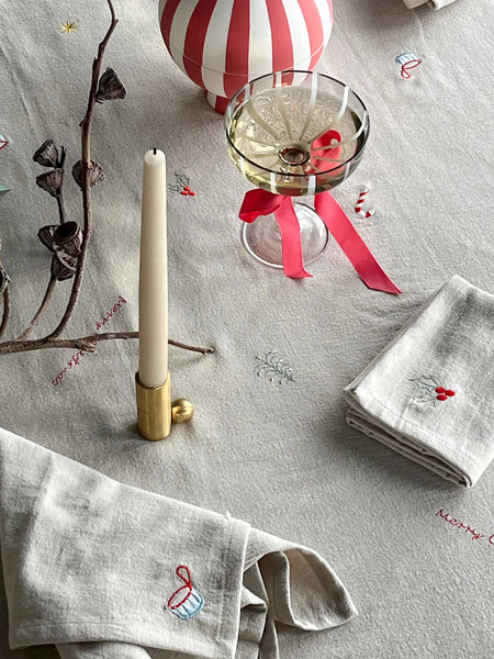 Wunderschöne Tischdecke mit gestickten „Weihnachtsmotiven“.